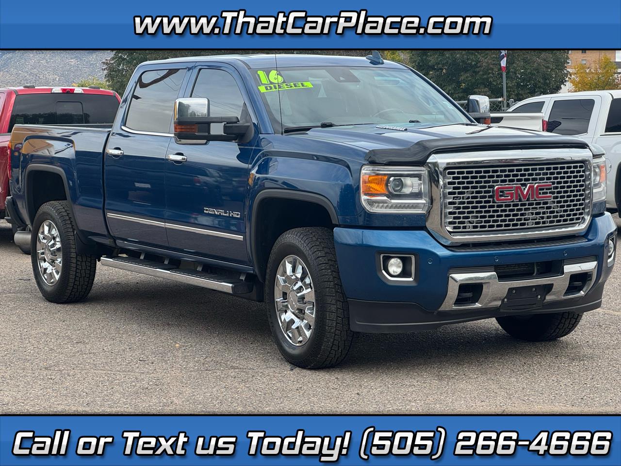 Step into luxury and power with this stunning Dark Blue 2016 GMC Sierra 2500HD. Equipped with top-of-the-line safety features, you can drive with peace of mind knowing that this vehicle has your back. The sleek exterior is complemented by alloy wheels and running boards, adding both style and convenience. With a spacious interior offering front heated seats and adjustable foot pedals, every drive will be a comfortable one. This truck is not just about looks - it's a powerhouse on the road with its high-intensity discharge headlights and skid plate for added protection. The carfax report available ensures transparency and confidence in your purchase. Whether you're cruising around town or hitting the open road, the GMC Sierra 2500HD is ready to take you on your next adventure in style.That Car Place has been family owned and operated for over 40 years. We work hard to offer our customers the best in pre-owned autos, trucks and SUV's. We don't just want your business today--we want you to keep coming back again and again. All of our vehicles are fully inspected and certified with a 63 point inspection through our on-site repair center. We also assist in financing and offer warranties on each vehicle sold. Visit us at our location or call us or text us directly at 505-266-4666.