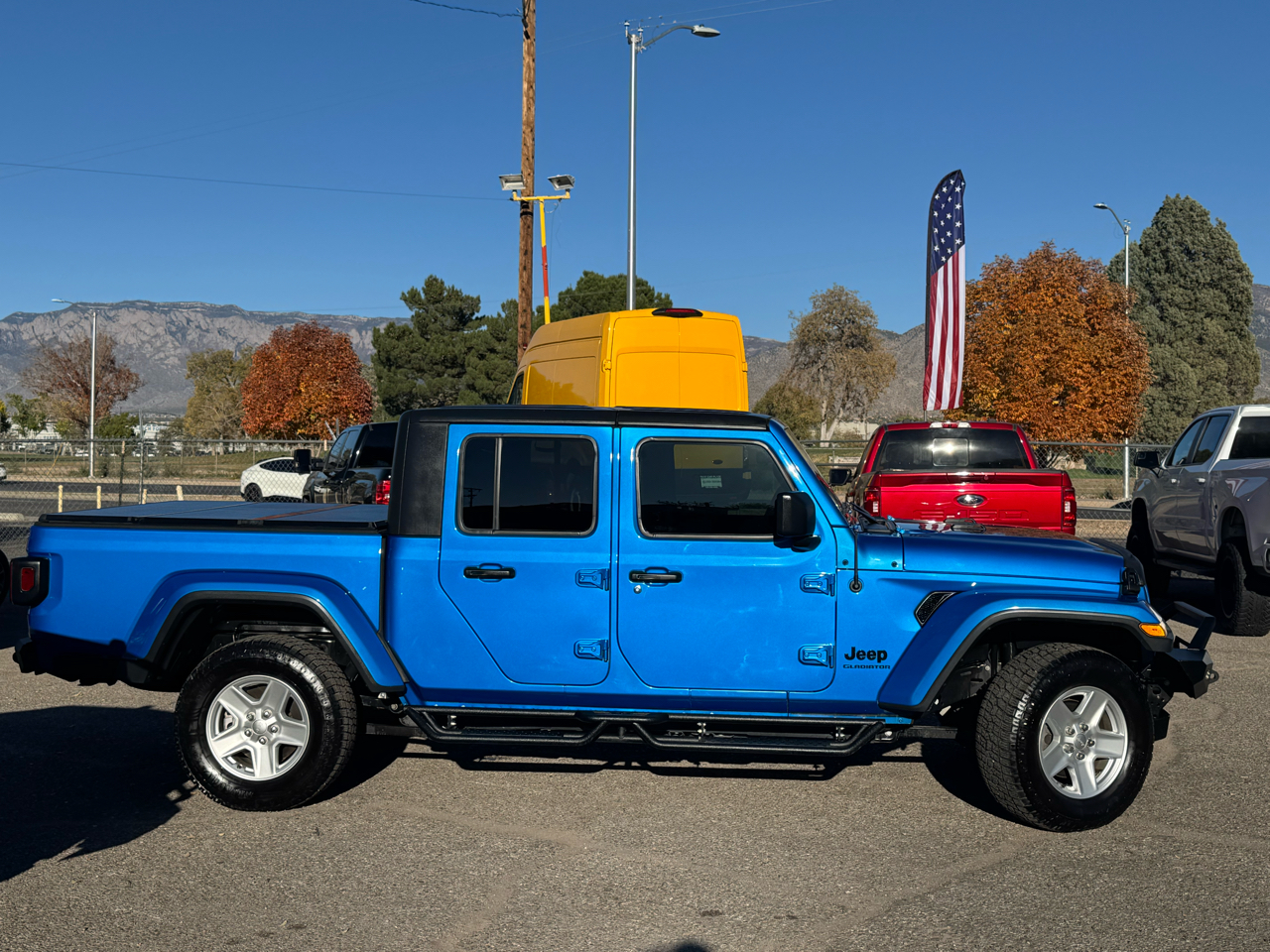And the cherry on top? A carfax report is available for this beauty, giving you peace of mind knowing the full history of your new ride. Don't miss out on the opportunity to make this vibrant blue Jeep Gladiator yours today!